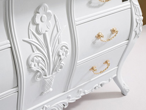 MFG-24實(shí)木仿古柜,采用泰國進(jìn)口橡木,配以水晶木紋白天然大理石臺(tái)面,以及圓弧形立體大理石臺(tái)下盆。純白色彩配以金色五金拉手,整體外觀凸現(xiàn)新一代田園風(fēng)格,產(chǎn)品游走于現(xiàn)代與復(fù)古之間,線條簡(jiǎn)約而不簡(jiǎn)單,品味低調(diào)而不失奢華。